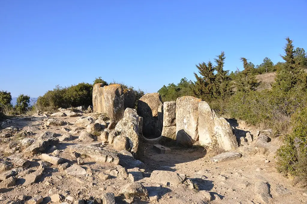 These two dolmens belong to the “corridor” type and are composed of large stones (megaliths). They feature a dividing slab and a double chamber and are built on burial mounds measuring 20 meters in diameter and 2.5 meters in height. Neither of the two had a stone roof; instead, they were covered with branches and soil. Around these dolmens, archaeologists discovered necklace beads, arrowheads, copper awls, buttons, pottery, and axes, which are now displayed in the Museum of Navarre.