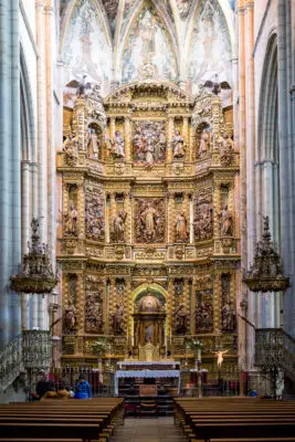Viana’s historic core is characterized by its well-preserved medieval layout, with narrow streets, stone buildings, and an impressive collection of architectural landmarks. The Church of Santa María, built between the 13th and 14th centuries, stands out as a remarkable example of Gothic architecture. Its richly decorated portal and towering bell tower dominate the skyline, while the interior features a magnificent altarpiece and a tomb attributed to Cesare Borgia, a controversial Renaissance figure who served as Viana’s governor and died in battle nearby in 1507.